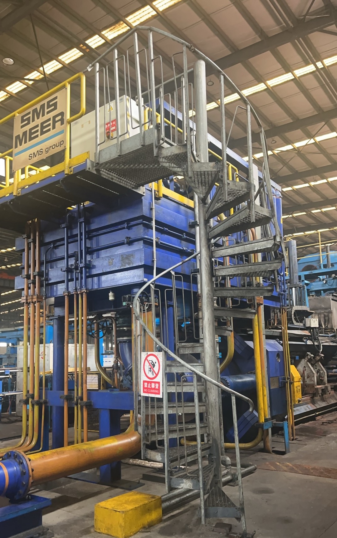 The aluminum extrusion machine is mainly composed of three parts: mechanical part, hydraulic part, and electrical part. The mechanical part includes the base, guide column, front crossbeam plate, rear crossbeam plate, insulation seat, scissor seat, mold seat, upper and lower guide rail plates, mechanical arm ingot feeding device, extrusion rod seat, extrusion rod and other components. The hydraulic system consists of a master cylinder, a secondary cylinder, a locking cylinder, a mold seat cylinder, a plunger pump, a vane pump, a valve plate, valves, oil pipes, oil tanks, and various hydraulic switches. The electrical part mainly consists of a power supply cabinet, an operation console, a PLC programmable controller, an AC contactor, a display screen, etc